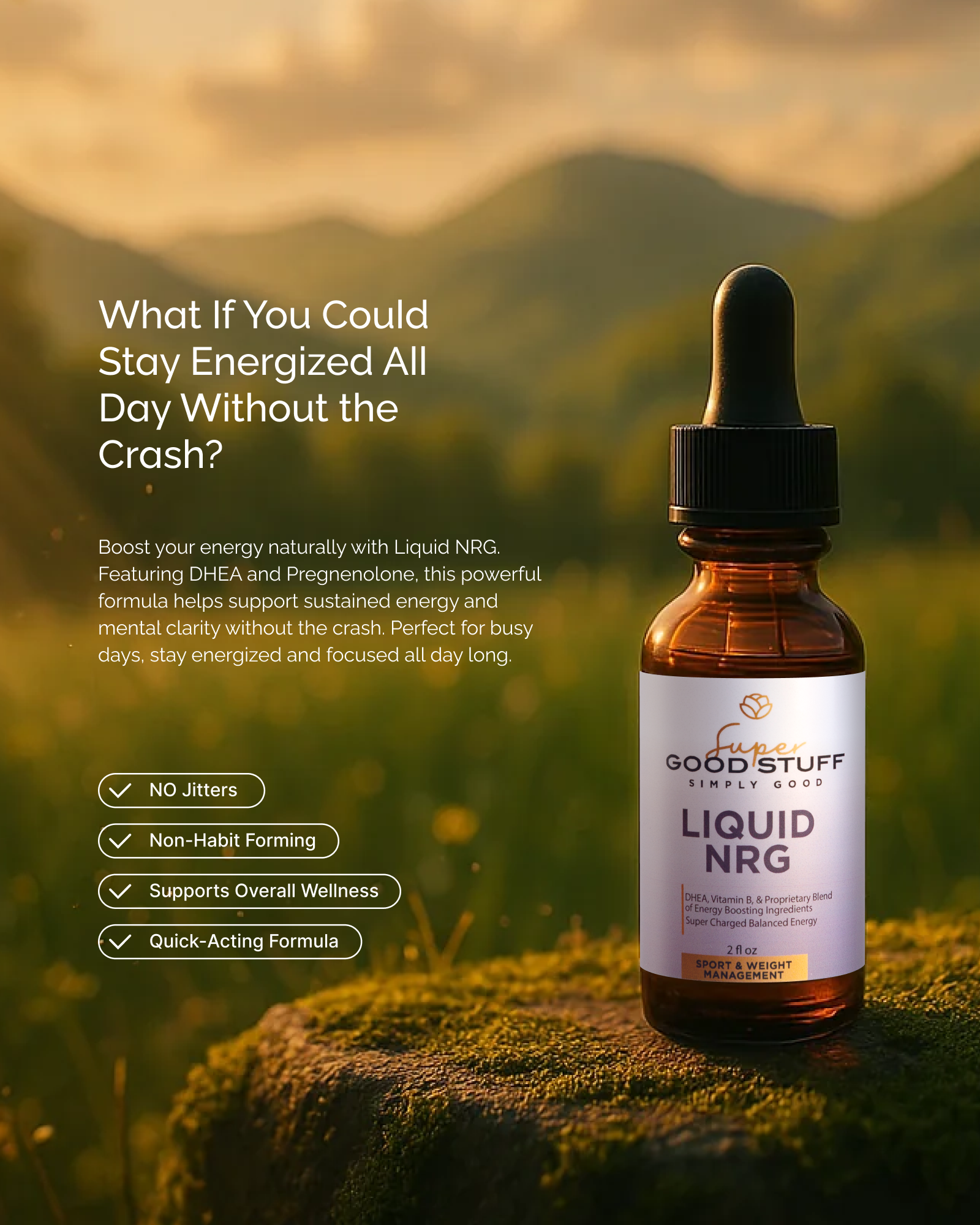 Unlike conventional energy supplements or energy drinks, Liquid NRG offers a holistic approach to energy support: